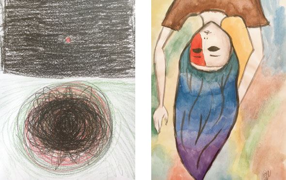 Рис. 1.3–1.4. Илья. Темы заданий: «Крик», «Образ себя»