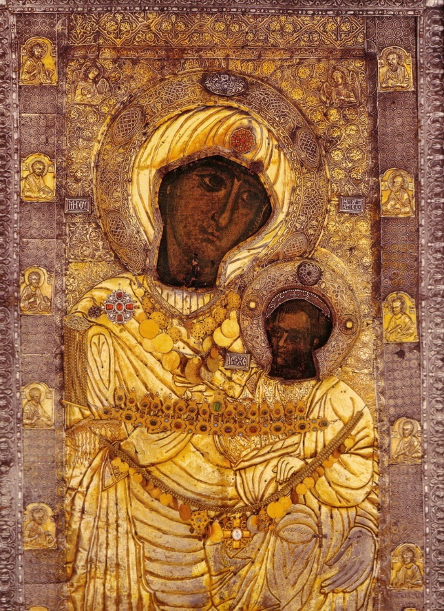 Вы спрашиваете: почему турки не похитят ее убранство? Они не только не могут снять драгоценностей, но не могут и войти в малый храм. Вот уже третий год живут в монастыре, а еще нога их не ступала в храме. Когда разозлятся на нас, начинают требовать от нас золота и серебра и церковной утвари, то мы отвечаем, что не имеем их, хотя на самом деле все спрятано. Ничего не открываем, готовы пострадать даже, чтобы не досталось им монастырское богатство. Показываем им эту святую икону и говорим: “Вот на иконе много золота и серебра и дорогих камней, если вам угодно, то возьмите себеˮ. Они же, стоя в дверях, говорят: “Мы не можем к ней подступиться. Нас одолевает страх. Вон Она на нас как сердито смотрит!ˮ – и отходят посрамленные, не в силах что-либо сделать. А мы благодарим Царицу Небесную за то, что Она Сама Себя защищает и нас, грешных, спасает, покрывая Своей милостию. И за то еще благодарим Владычицу нашу Богородицу, что послала турок смирить нас, грешных: если бы их не было, то тогда уже разбойники нас совсем бы разорили и опустошили храм.