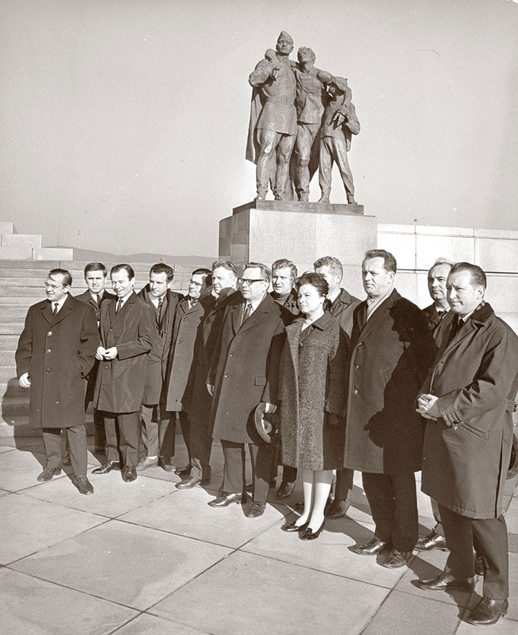 Визит советской делегации в Чехословакию в 1969 году. Горбачев держится сзади (второй справа), а рядом с главой делегации Борисом Пастуховым (в центре) – Егор Лигачев из Томска – будущий главный оппонент Горбачева в Политбюро