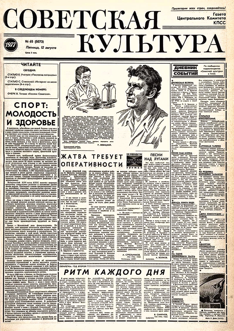 Полоса газеты «Советская культура», пропагандирующая передовые методы уборки урожая