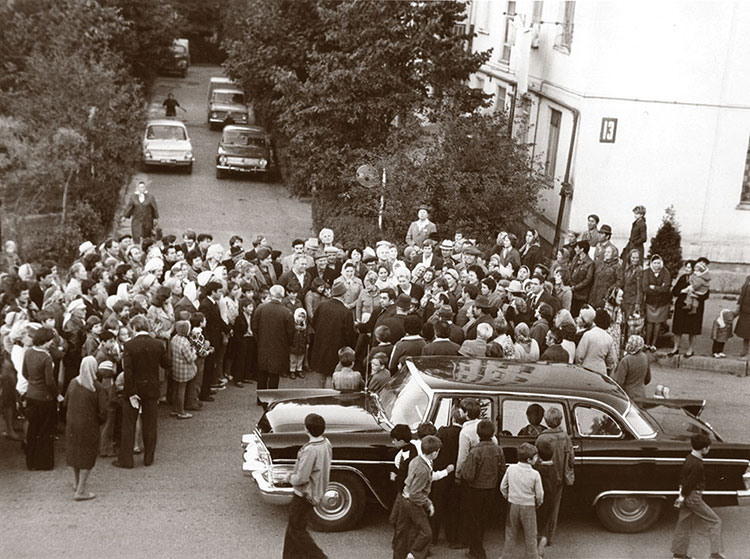 Горбачев никогда не чурался встреч на улицах города «с народом» (спиной к нам, в шляпе), а мальчишек больше всего заинтересовал положенный ему теперь по рангу автомобиль «Чайка»