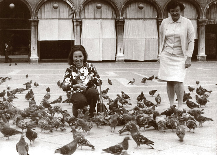 Оказалось, что голуби в Италии точно такие же, как в СССР (Раиса Максимовна кормит голубей в Риме в первой поездке супругов в «капстрану»)