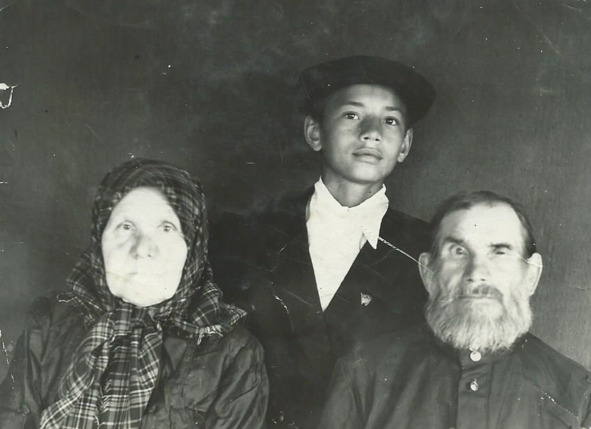 Фото 1953 года, с дедом Иваном Ивановичем Фроловым и его второй женой Аксиньей Лиморенко