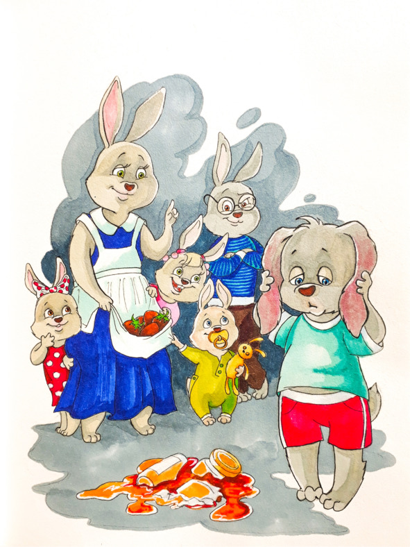 Случай долго себя не заставил ждать. Кто-то разбил банку с морковным вареньем, которое стояло в кладовой и которое без разрешения взрослых трогать запрещалось. Мама-зайчиха выстроила своих зайчат в ряд и спросила, кто разбил банку. Но каждый ответил: