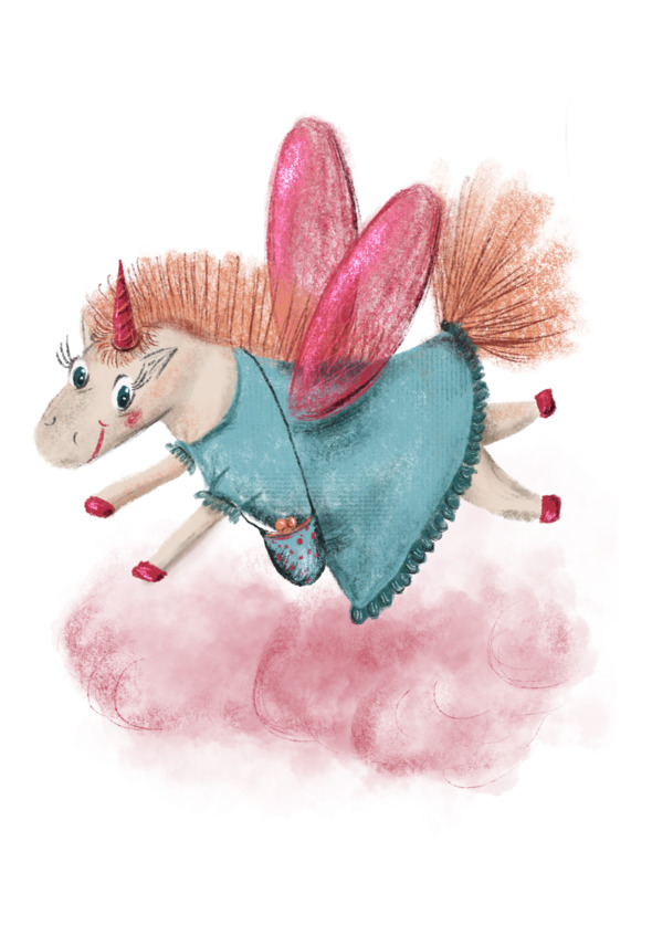 Взмахнула Фея своей палочкой, и выросли у лошадки крылья. Вмиг вспорхнула она высоко-высоко за облака. Летала над своей фермой, обгоняла воробьев и сорок.