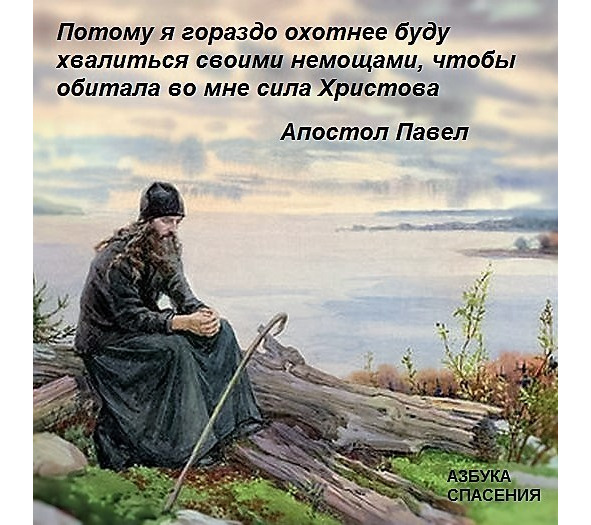 Но Господь сказал мне: «довольно для тебя благодати Моей, ибо сила Моя совершается в немощи». И потому я гораздо охотнее буду хвалиться своими немощами, чтобы обитала во мне сила Христова. Посему я благодушествую в немощах, в обидах, в нуждах, в гонениях, в притеснениях за Христа, ибо, когда я немощен, тогда силен. Я дошел до неразумия, хвалясь; вы меня к сему принудили. Вам бы надлежало хвалить меня, ибо у меня ни в чем нет недостатка против высших Апостолов, хотя я и ничто. Признаки Апостола оказались перед вами всяким терпением, знамениями, чудесами и силами. Ибо чего у вас недостает перед прочими церквами, разве только того, что сам я не был вам в тягость? Простите мне такую вину (2Кор.12:1—13).