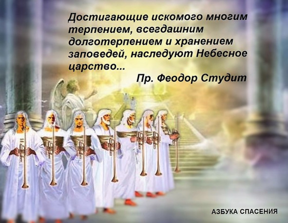 Достигающие искомого многим терпением, всегдашним долготерпением и хранением заповедей, наследуют Небесное царство
