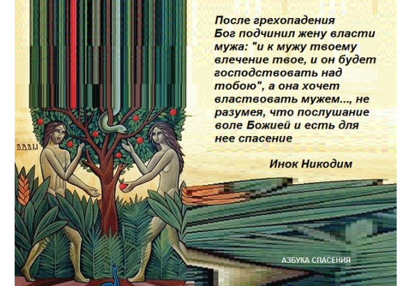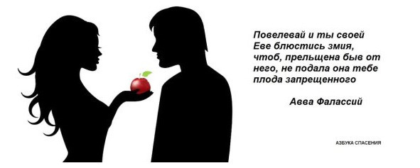 Повелевай и ты своей Еве блюстись змия, чтоб, прельщена быв от него, не подала она тебе плода запрещенного.