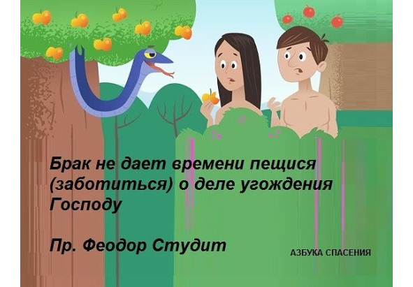 Как соль рождается от воды и, прикасаясь опять к воде, растворяется в ней и исчезает, подобно сему и человек плотски рождается в жизнь от жены и, когда опять бессловесно соединяется с нею, умирает душою для Бога. Поэтому, будучи рожден от плотского, греховного соединения, не вдавайся опять в греховное, плотское смешение – да не исчезнешь, как соль. Не для того ты сотворен от Бога, чтобы опять обращаться на те же плотские, греховные действия и умирать, но для того, чтобы, взыскуя лучшего и блаженнейшего, ты восходил в первое достояние – безгрешное устроение Божие и преуспевал в этом. Приятен нынешний, законный брак по плоти, но чистота и целомудрие несравненно лучше и преславнее: и сперва Адам назначен был к этому именно (то есть к чистоте и целомудрию). А брак попущен теперь – на малое время – только для тех, которые не хотят пребывать в чистоте и разуметь лучшее или не могут; чистота же пребывает во веки вечные.