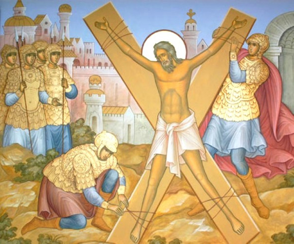 – В чем согрешил человек праведный и друг Божий, за что его ведут на распятие?