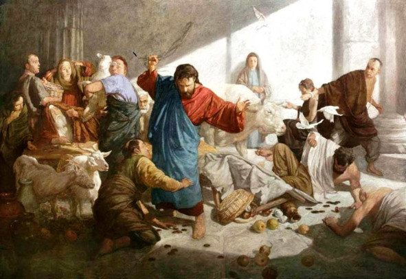 Многократны и многообразны дни посещения нашего Духом Святым. Когда нужно бывает остановить нас на кривых путях наших, Он останавливает нас тяжелой болезнью, потрясает смертью близких и любимых людей, подвергает бесчестью или разорению имущества, смиряет нашу гордость публичным унижением и оскорблениями. А более близких Ему и достойных Он останавливает даже Своими тихими речами во сне и наяву. Это ли не дни посещения нас Его, служащие к миру и спасению нашему?! И как часто, вместо исправления путей своих, мы ропщем на Бога за эти посещения! Это первый урок для нас. А второй урок, преподанный Господом изгнанием торжников, состоит в том, что даже в глубокой печали и горьких слезах мы внезапно должны воспламениться гневом, если увидим или услышим поругание святыни. Тогда внезапно печаль наша должна смениться священным гневом и, не думая ни о какой опасности, даже опасности жизни нашей, должны мы смело и без страха встать на защиту святыни. Но часто ли бывает так? Не гораздо ли чаще низкое малодушие овладевает нами, и не смеем мы слова проронить пред дерзкими богохульниками и кощунниками?