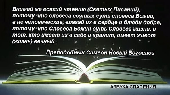 Почему так происходит? Потому что наша душа, по сотворении – христианка, и радуется, когда состоит в общении с Тем, Кто даровал ей жизнь, приведя из небытия в бытие. По этому принципу составлен Сборник Святых Писаний «Азбука Спасения» и состоит в основном из богодухновенных текстов святых отцов и прямых цитат из Библии. При этом неважно, что за текст читает искатель Истины (Христа), сам процесс чтения или слушания Слова Божия, как пишет пр. Исаак Сирин: «есть прекрасное собеседование с Богом».