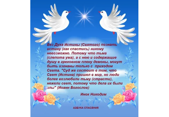 Возлюбленные! не всякому духу верьте, но испытывайте духов, от Бога ли они, потому что много лжепророков появилось в мире. Духа Божия (и духа заблуждения) узнавайте так: всякий дух, который исповедует Иисуса Христа, пришедшего во плоти, есть от Бога, а всякий дух, который не исповедует Иисуса Христа, пришедшего во плоти, не есть от Бога, но это дух антихриста, о котором вы слышали, что он придет и теперь есть уже в мире. Дети! вы от Бога, и победили их; ибо Тот, Кто в вас, больше того, кто в мире. Они от мира, потому и говорят по-мирски, и мир слушает их. Мы от Бога, знающий Бога слушает нас, кто не от Бога, тот не слушает нас. По сему-то узнаём духа истины и духа заблуждения. Возлюбленные! будем любить друг друга, потому что любовь от Бога, и всякий любящий рожден от Бога и знает Бога. Кто не любит, тот не познал Бога, потому что Бог есть любовь (1Ин.4:1—8).
