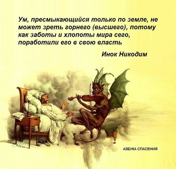 Ум, пресмыкающийся только по земле, не может зреть горнего (высшего), потому как заботы и хлопоты мира сего поработили его в свою власть. Он глух к призывающему всех Гласу и не разумеет важности Словес Спасителя: