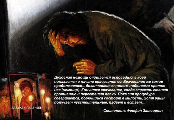 Духовная немощь очищается исповедью, в коей полагается и начало врачевания ее. Святитель Феофан Затворник