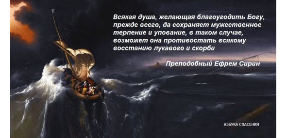 Терпение есть как бы камень, неподвижно стоящий против ветров и волн житейских, и достигший его не изнемогает при наводнении и не возвращается назад, но и находя покой и радость, не увлекается самомнением, а всегда пребывает одинаковым и в благоденствии, и в злополучии, потому он и пребывает невредимым от сетей врага. Когда встретит бурю, терпит с радостию, ожидая конца, когда и тихая погода бывает, ожидает искушения до последнего издыхания, по слову великого Антония. Такой познает, что в этой жизни отнюдь ничего нет неизмененного, но все проходит, потому он и нимало не заботится о чем-либо земном, но предоставляет все Богу, ибо Он печется о нас.