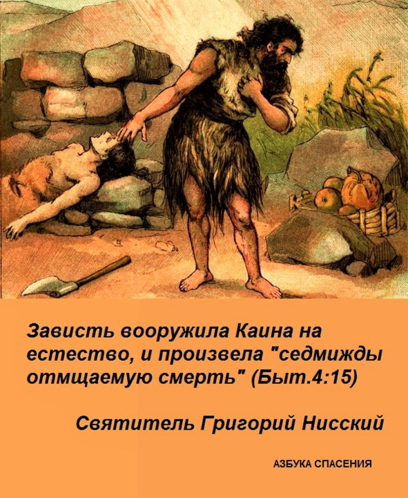 Зависть – это начало зловредных страстей, отец смерти, первая дверь греху, корень порока, порождение печали, матерь бедствий, повод к непокорности, начало стыда. Зависть изгнала нас из рая, став змием пред Евою, зависть преградила доступ к древу жизни и, совлекши с нас священные одежды, по причине стыда привела к ветвям смоковницы. Зависть вооружила Каина на естество, и произвела седмижды отмщаемую смерть (Быт.4:15).
