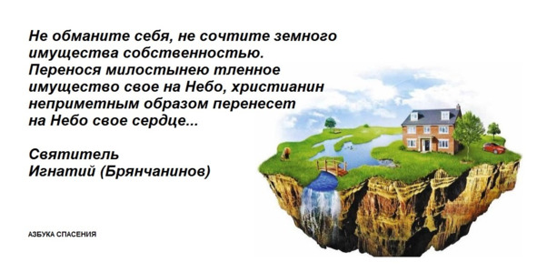 Не обманите себя, не сочтите земного имущества собственностью. Перенося милостынею тленное имущество свое на Небо, христианин неприметным образом перенесет на Небо свое сердце… Раздаянием имения предваряется взятие креста. При сохранении имения невозможно принятие и ношение креста.