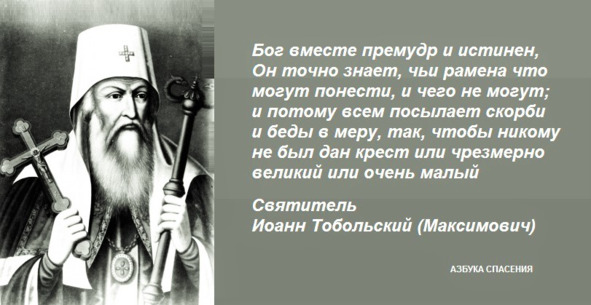 АНГЕЛ. Бог вместе премудр и истинен, и все расположил мерою, числом и весом (Прем. Сол.11:21). Он точно знает, чьи рамена что могут понести, и чего не могут; и потому всем посылает скорби и беды в меру, так чтобы никому не был дан крест или чрезмерно великий или очень малый. Господь наблюдает, как и какой крест послать одному, и какой другому. Он держит как бы на весах с одной стороны крестное бремя, а с другой силу носящего, и соразмеряет то и другое, чтобы никому ничего не было послано сверх силы. И Св. Давид сказал: Ты напитал их хлебом слезным, и напоил их слезами в большой мере (Пс.79:6). Дает в меру, а не выше меры, чтобы люди, чрезмерно отягощенные скорбями, не пали под бременем их.