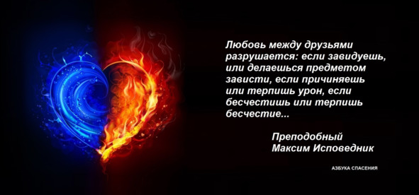 Расторгающие любовь причины суть следующие: бесчестие, причиненный урон, оклеветание или веры или жития, побои, удары, раны и проч., и притом, когда сие случается или с самим кем, или с кем из родственников его и друзей. Разрывающий любовь по какой-либо из таковых причин, не познал еще какая цель заповедей Христовых.