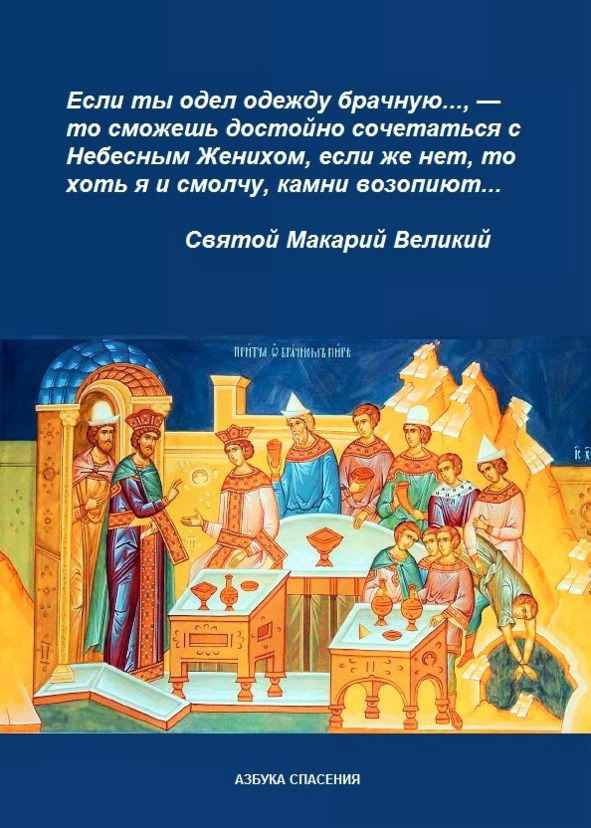 Ты призван на пир жизни, уже готовый. Если уместно нам с тобой чем-либо в сем отношении похвалиться, то разве тем, как мы всем этим воспользовались. Это, когда есть в нас в силе, есть наша брачная одежда. Величаться ли ею? Не паче ли побаиваться надо, как бы богатый в милости Устроитель пира, пришедши, не сказал нам: видите, какой пир! А одежда-то у вас какова?!