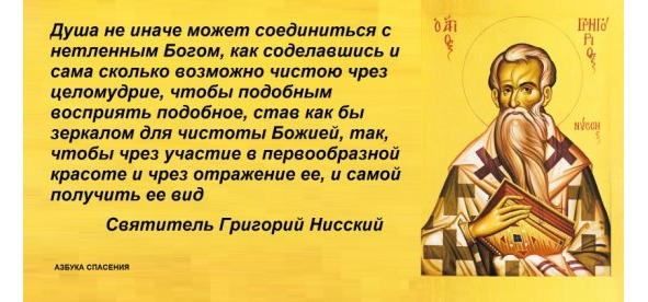 Душа не иначе может соединиться с нетленным Богом, как соделавшись и сама сколько возможно чистою чрез целомудрие, чтобы подобным восприять подобное, став как бы зеркалом для чистоты Божией, так чтобы чрез участие в первообразной красоте к чрез отражение ее и самой получить ее вид.