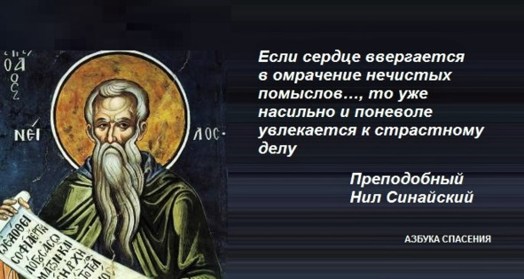 Душа, увлекаемая нечистыми помыслами мерзостна Христу. Если нечистый помысл найдет себе вход в душу твою, он представляется ей сладостным и занимает ее собой, чтобы умертвить, и делается лукавый помысл как бы сетью в душе, если не будет прогнан молитвой, слезами, воздержанием и бдением.