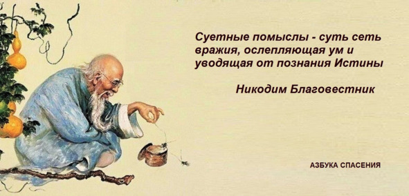 Многие суетные помыслы даже против воли нашей тревожат нас и почти без нашего ведения обольщают нас, входя в нас так неприметно и хитро, что мы не только не можем воспрепятствовать их входу, но и с великим трудом узреваем их, но принимать их или отвергать возможно всякому, кто при помощи Божией употребит на то свое старание и усилие. Как возникновение их не зависит от нас, так отвержение или приятие их состоит в нашей воле. Впрочем, и в самом приражении помыслов не все надобно приписывать набегу помыслов или тем духам, которые стараются всеять их, но от нас зависит исправить качество помыслов и сделать, чтобы в сердцах наших возникали духовные-святые помыслы вместо плотских-земных, если не всегда, то наибольшею частью.