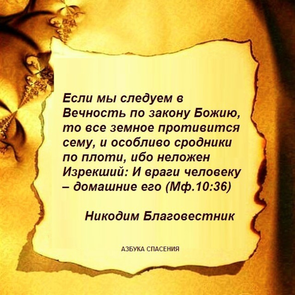 Берегись, берегись, чтобы за пристрастие к возлюбленным тобою родственникам все у тебя не явилось как бы объятым водами, и чтобы ты не погиб в потопе миролюбия. Не склоняйся на слезы родителей и друзей, в противном случае будешь вечно плакать. Когда родственники окружат тебя, как пчелы, или лучше сказать, как осы, оплакивая тебя: тогда немедленно обрати душевные очи твои на смерть и на дела твои, чтобы тебе можно было отразить одну скорбь другою. Сии наши, или лучше не наши, лукаво обещаются сделать для нас все, что мы любим, намерение же их то, чтобы воспрепятствовать доброму нашему стремлению, а потом уже привлечь нас к своей цели.