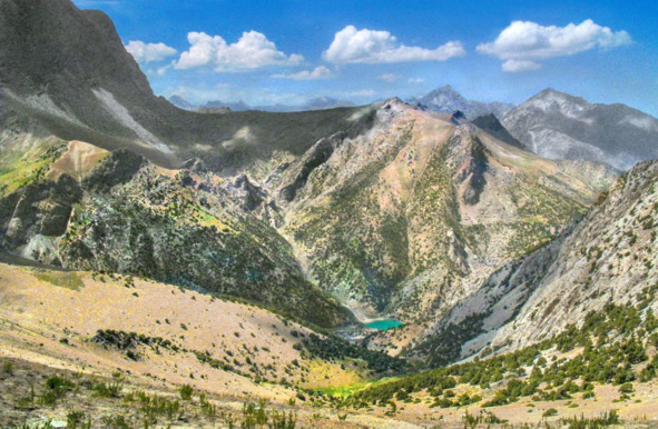 Озеро Кулисьех. Вдали перевал Лаудан в долину реки Чапдара и к Алаудинским озёрам