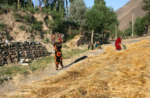 Иногда на дороге (как и в других местах Средней Азии) под колёса машин раскладывают стебли зерновых для обмолота зерна проезжающими машинами.