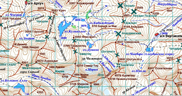 Карта окрестностей альплагеря Артуч