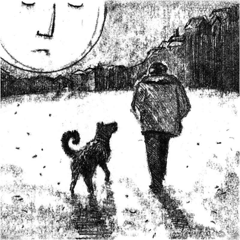 Потом, без предупреждения и затяжных ливней, выпал снег. Тогда же прибилась рыжая лайка, наверное метис. Я встретил её возле колодца: зимой водопровод отключали, и надо было подниматься с баклагами на холм к водонапорной башне. Собака не выглядела изможденной, я даже подумал, что она из соседнего посёлка и потерялась. С ней был щенок. Ещё маленький. Белый. Похожий на медвежонка. Я стал подкармливать их.