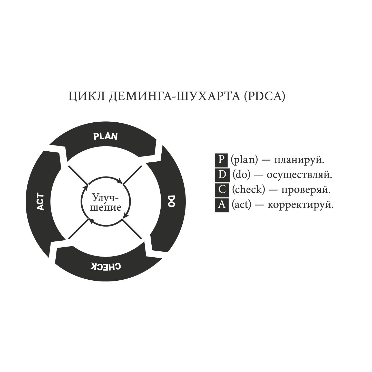 Неизбежность частых ошибок – это плохая новость. Но есть и хорошая. Она состоит в том, что сложность компенсируется нашим седьмым принципом, в основу которого лег цикл Деминга: Спланировать, Сделать, Проверить, Скорректировать.