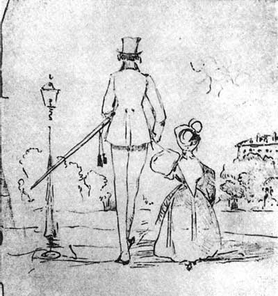 Теккерей с женой в первые годы супружества. Рисунок Теккерея.