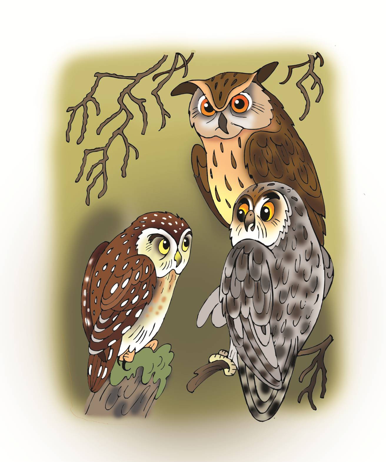 Сидит старый и седой Сыч на дереве, и размышляет.