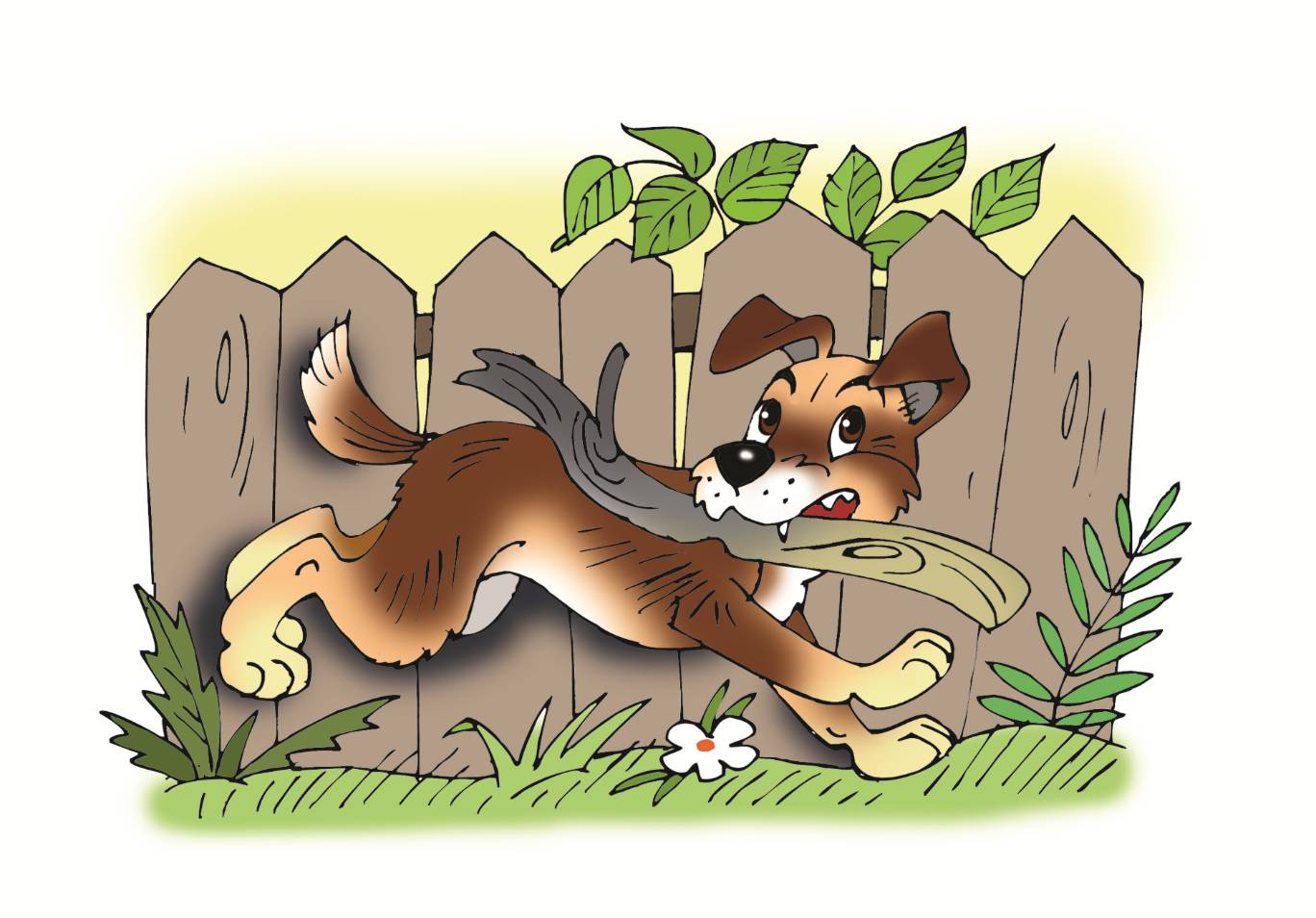 Стоят старики у плетня и беседуют. Глядят, бежит к ним бродячая Собака. Испугались старики. Схватил один из стариков лежавшую на земле толстую палку и запустил в Собаку, да промахнулся. Подбежала Собака к палке, подобрала и в зубах поднесла старику.