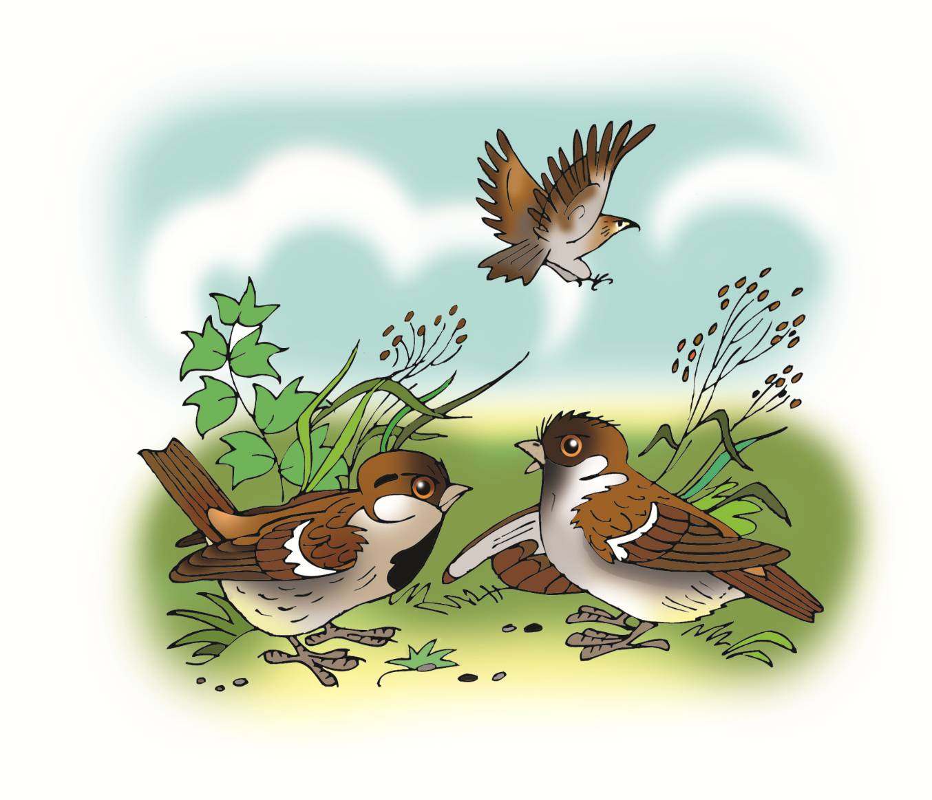 Сидят два Воробья на пригорке и глядят, как Орёл низко парит над землёй.