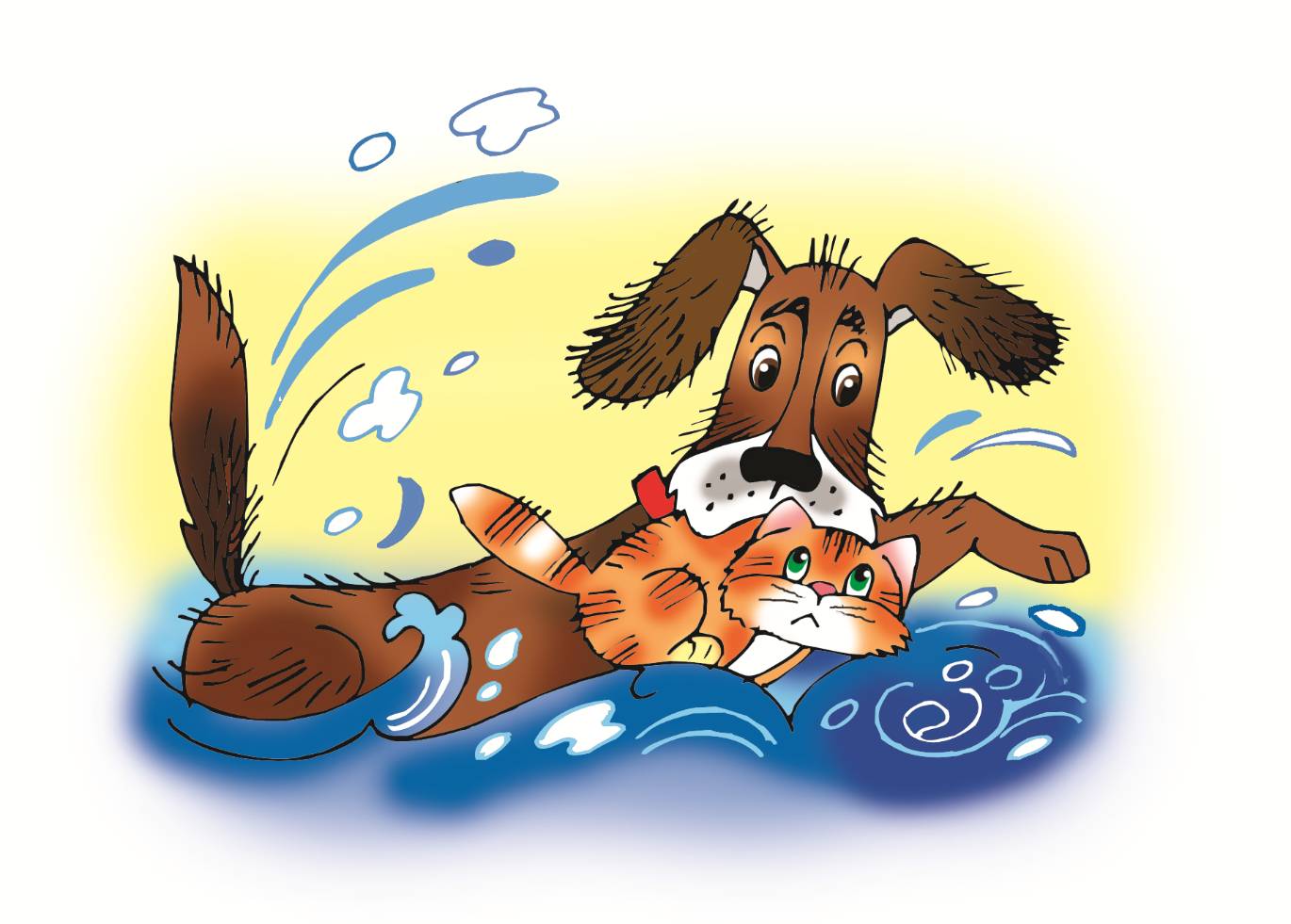 Бросился Пёс спасать тонущую в речке Кошку. Схватил её за шиворот покрепче. Плывёт что есть силы к берегу, а Кошка воет от страха и боли. Уж больно острые зубы у Пса.