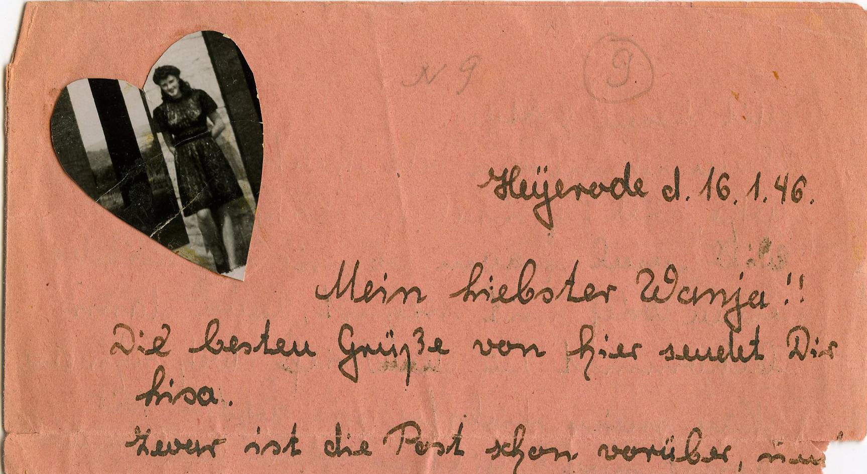 На этот раз Лиза прожила в Молькерайе десять дней. Все эти десять счастливых дней мы были вместе. Я работал в штабе полка делопроизводителем, занят был только днем, а вечер и вся ночь оставались в нашем распоряжении. Из Дреблигара в Домитч и обратно я ездил на велосипеде, подаренном мне бургомистром Хейероде. Перед отъездом Лизы Павел Крафт пообещал ей организовать мне еще одну поездку в Хейероде и даже назначил дату – 15 января 1946 года. Когда Лиза вернулась домой, то между нами завязалась оживленная переписка. Письма Лизы за это время у меня сохранились до сегодняшнего дня. Вот краткие выдержки из некоторых ее писем за январь 1946 года: