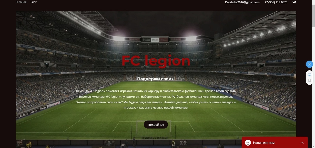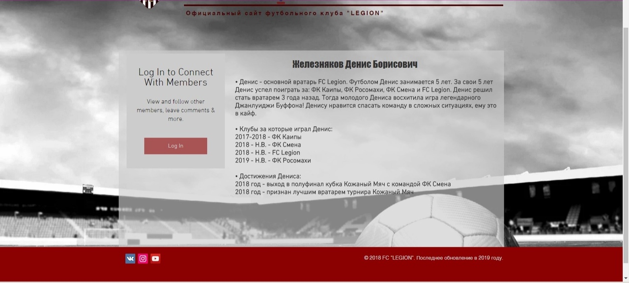 Всё было замечательно, но, к сожалению, сайт пришлось закрыть и перейти на такие социальные сети как Инстаграм, ВКонтакте, Ютуб. Сайт был закрыт всего по двум причинам. Первая, и самая главная причина, это финансирование. Финансирование, которого не было. По этой же причине футбольный клуб Легион не смог заказать свою форму… Вторая причина – это ненадобность. Сайт подтормаживал и был не оптимизирован для мобильного интернета, из-за чего долго грузился и вылетал. Поэтому было решено закрыть сайт, а в скором времени и вовсе удалить.