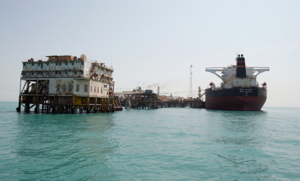 Погрузка танкера нефтью у платформы в Персидском заливе