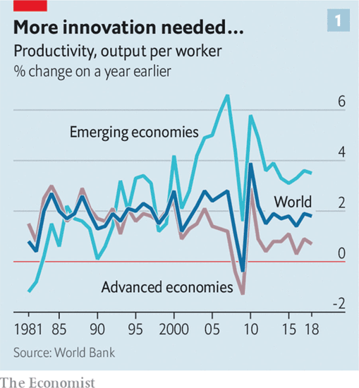 Во всем мире рост производительности труда резко замедлился в 1970-х гг. по сравнению с ошеломляюще высокими темпами в послевоенные десятилетия. В последующие за 1970-ми десятилетия в экономически развитых странах темпы роста тоже не показывали однозначно высоких показателей.