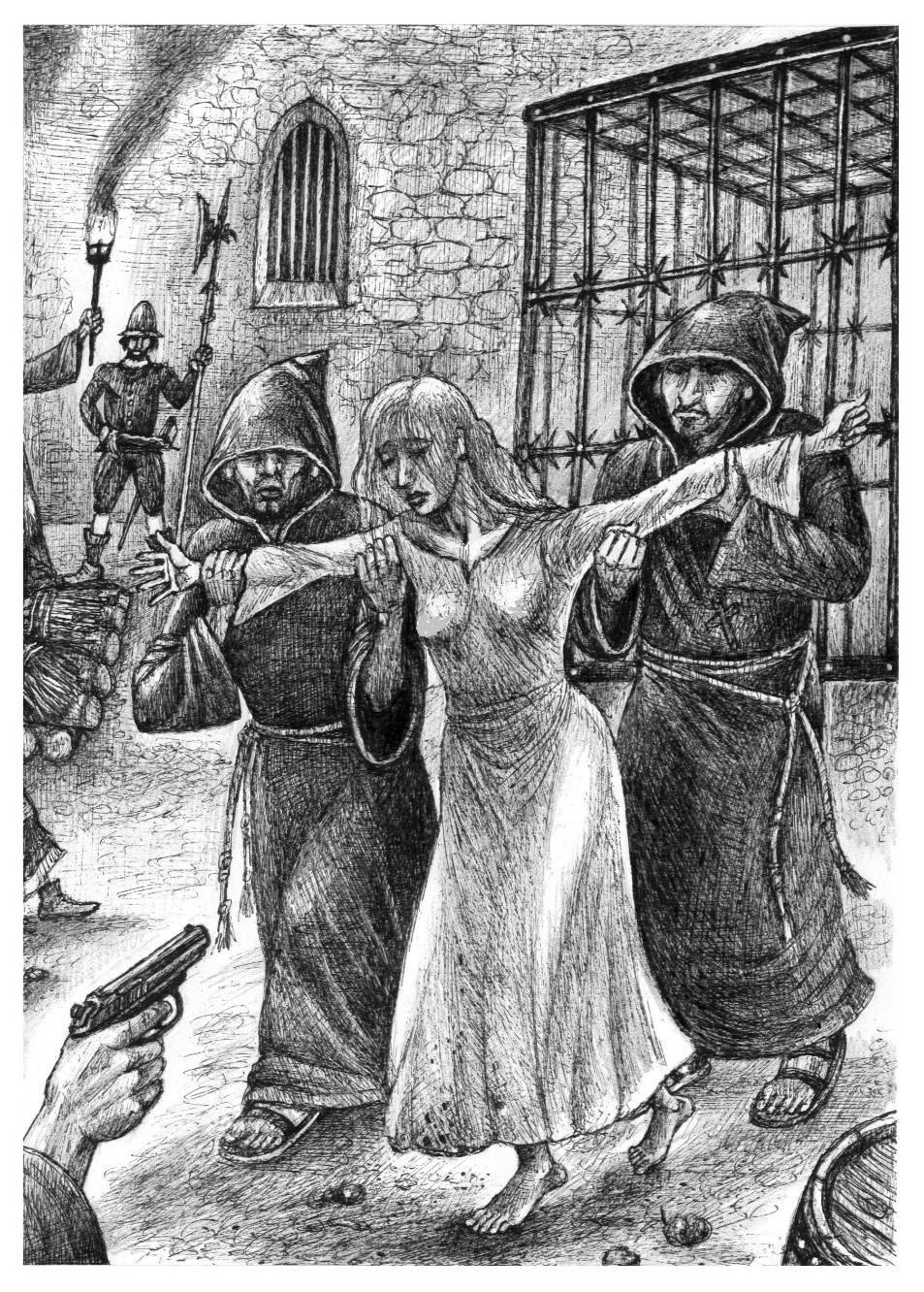 Вернувшись на площадь, ребята влились в толпу. Народу было не меньше тысячи. Все галдели и смотрели куда-то в сторону главного собора. Наконец они увидели то, зачем собрались все любопытные горожане. В клетке, по дороге, охраняемой от толпы стражниками, везли женщину. Она была в длинной холщовой рубахе, волосы были распущены, ноги босы. При этом она еле стояла на ногах, держась за прутья слабыми руками. На них видны были следы крови. Сзади шли священники с факелами в руках. «Молодая и довольно красивая», – заметил про себя Егор, – «Неужели везут на казнь? Сергей же говорил, что в Арагоне еще не время охоты на ведьм»! – заволновался он.