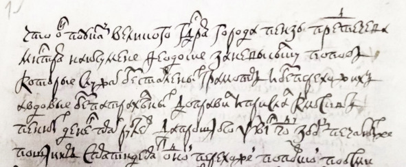 л.1об. что он по указу великого государя города Пензы Предтечева монастыря на игумене Феодосие за невысылку попов, которые служат без ставленых грамот и без перехожих, а вдовые без патрахельных, доправил и прислал к Москве пенных денег пять рублев,…»