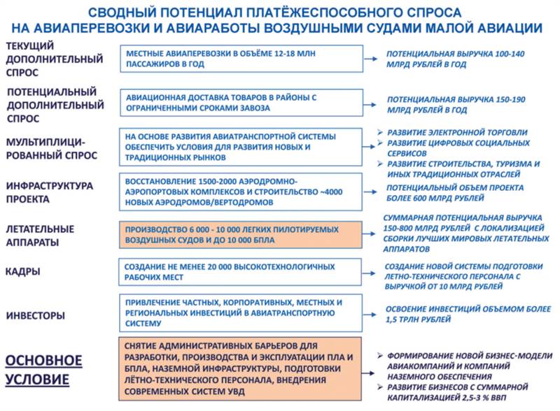 –восстановление 1500–2000 аэродромов лёгкой авиации и создание порядка 4000 новых аэродромов/вертодромов.