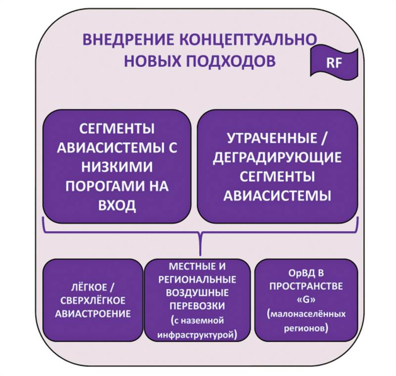 Оптимальное регулирование малой авиации может быть сформировано и отработано только опытно-экспериментальным путём и независимо от требований к тяжёлой авиации, но с учётом указанных требований. Таким образом, единственным способом преодоления негативных тенденций является полная смена подходов к регулированию процесса (рисунок 5.3):