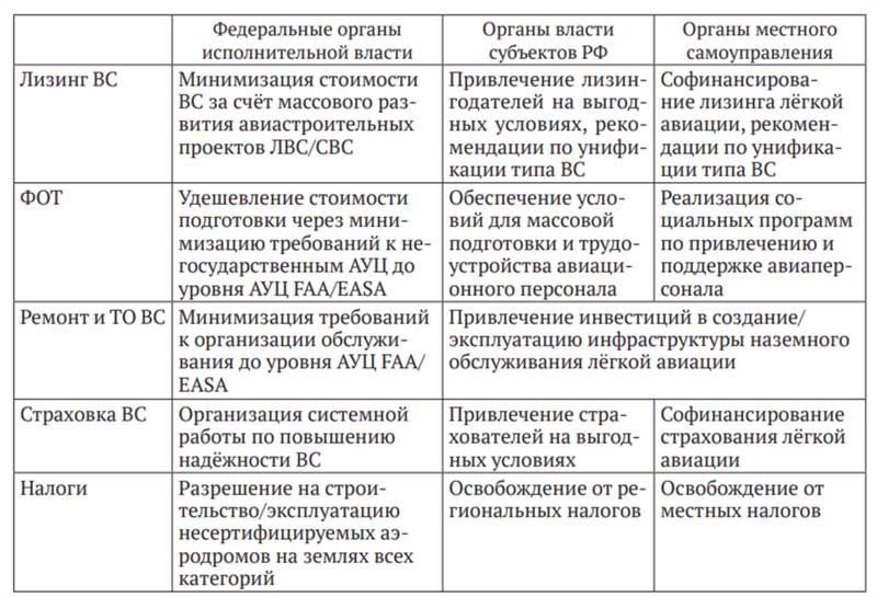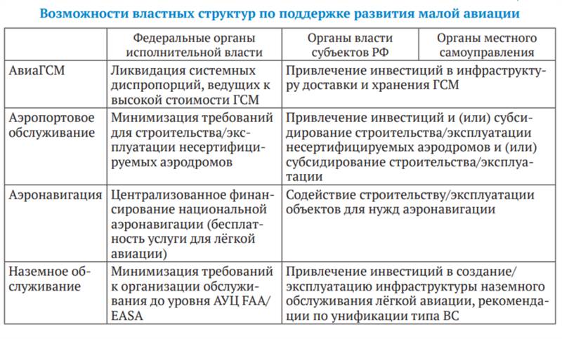 Меры, которые могут предпринять органы государственной власти и органы местного самоуправления для развития малой коммерческой авиации, достаточно очевидны и практически не нуждаются в комментариях (таблица 5.1).