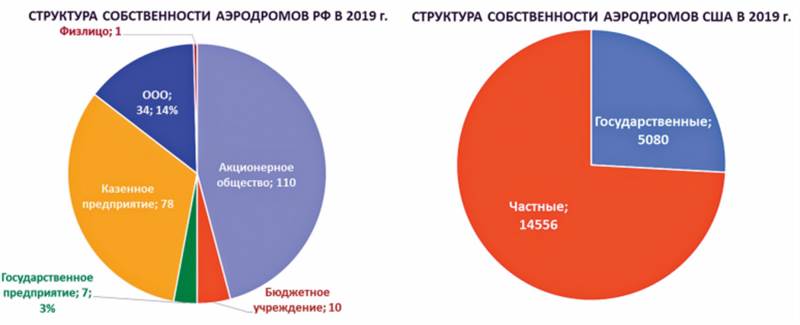 Если в США функционирует 5080 государственных аэродромов и 14 556 – частных469, то в России, при почти на два порядка меньшем количестве, большая часть аэродромов принадлежит государственным и квазигосударственным структурам470 (рисунок 5.9).Вто же время объективные инженерно-технические характеристики большей части аэропортов требуют относительно небольших инвестиций, посильных как среднему, так и малому бизнесу.