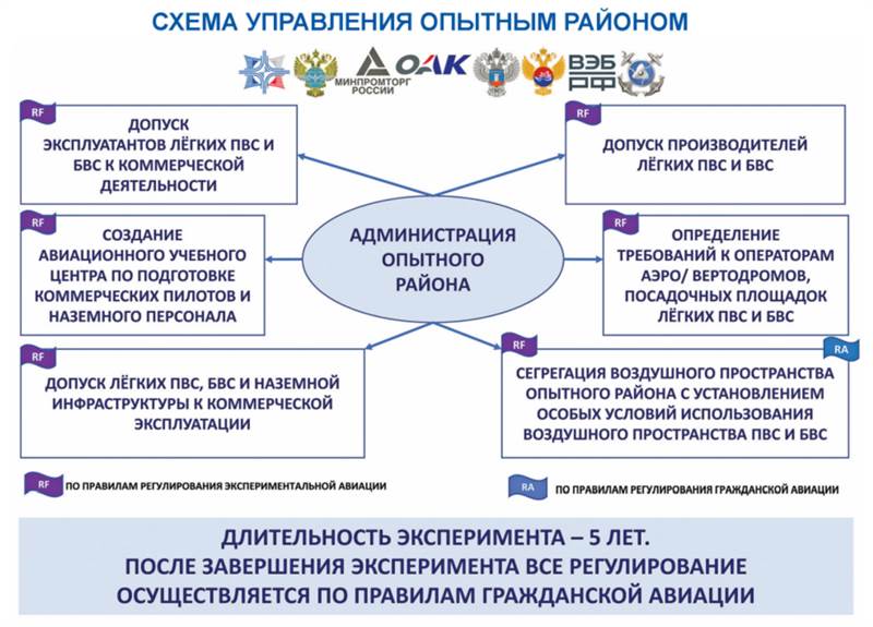 Существующий штат лётно-испытательных организаций сможет осуществлять все необходимые технические, методологические и организационно-надзорные функции, минимизировав тем самым административные издержки экспериментальных пилотируемых и беспилотных авиаперевозок. Применение описанного механизма позволит: